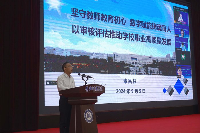 校党委副书记、校长漆昌柱从办学思路、办学定位、办学目标等方面介绍了学校基本情况与办学实绩,并围绕学校自评自建工作开展情况、自评自建成效及特色、自评报告数据补充说明等三个方面进行了全面深入的汇报。漆昌柱表示,学校将牢牢把握良好机遇,全力以赴配合专家组开展工作,以认真的态度对待评估,以务实的作风接受评估,虚心听取专家组的意见和建议,确保评估工作顺利进行,努力争取丰硕成果,助推学校事业高质量发展。