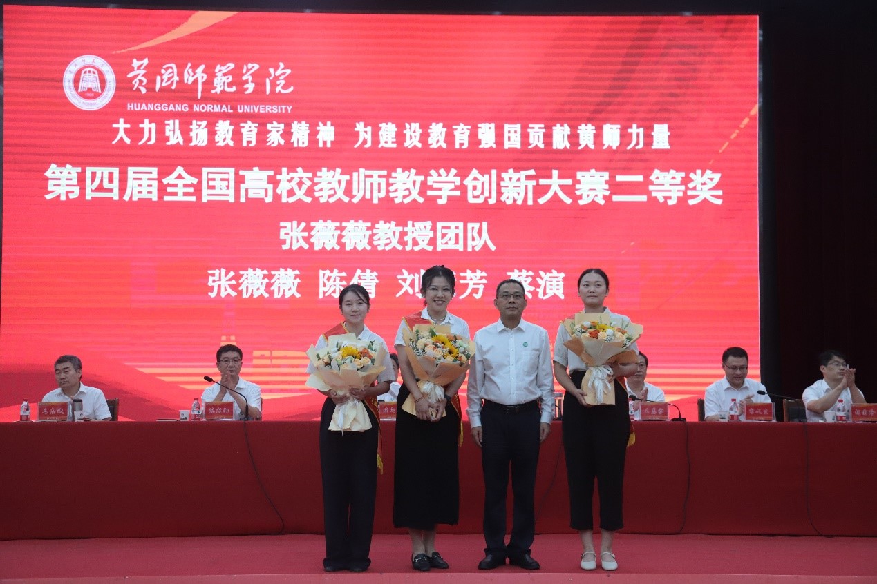 漆昌柱为第四届全国高校教师教学创新大赛新文科正高组二等奖获得者张薇薇教授团队、2024年湖北省杰出青年科学基金获得者万柳博士、湖北省服务基层“科技副总”类表现突出的专业人才方剑博士、湖北省服务基层“湖北产业教授”类表现突出的专业人才易开军博士献花。
