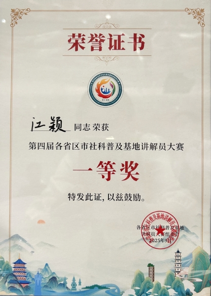 本网讯 9月24日,第四届各省区市社科普及基地讲解员大赛在浙江温州落下帷幕。在与全国93名优秀讲解员的同台竞技中,我校传媒与影视学院学生江颖表现优异,斩获佳绩,荣获全国一等奖。